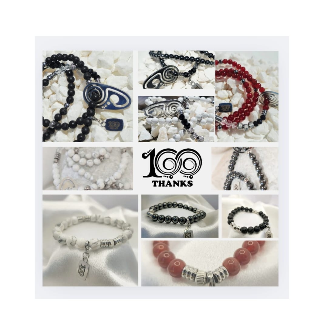 El collar 100 Thanks nace con un propósito sencillo y poderoso: crear un pequeño momento de gratitud y consciencia cada día.